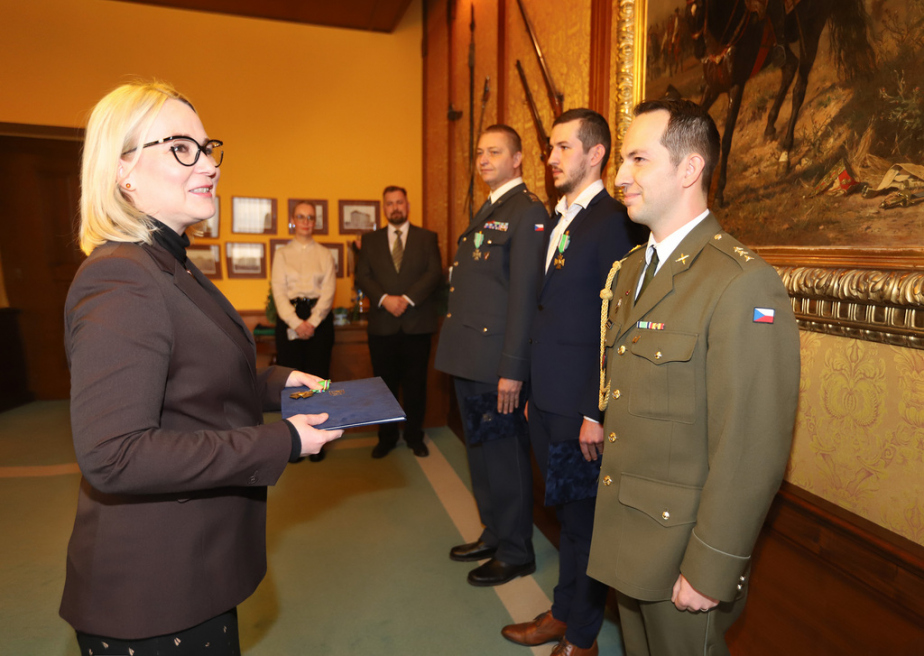 Na Ukrajinu odvezli od začátku války tuny humanitární i vojenské pomoci. V nebezpečných oblastech, často jen pár set metrů od frontové linie, strávili měsíce. Čtveřici vojáků v záloze z organizací Team4Ukraine a CESTA naděje života dnes ocenila ministryně obrany Jana Černochová nejvyšším vojenským resortním vyznamenáním.